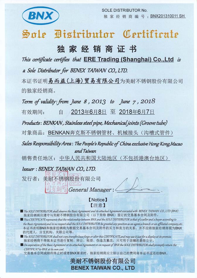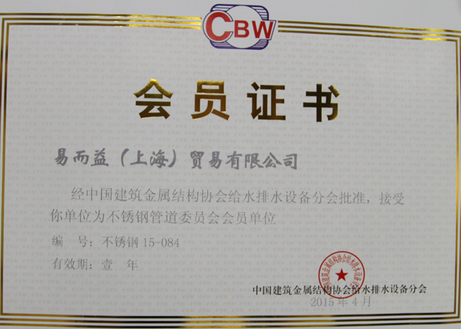 日本不锈钢协会认证书