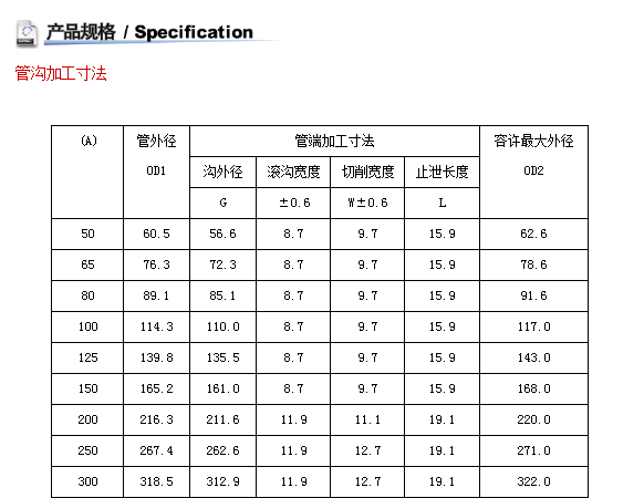 适用管种:配管用不锈钢钢管。 用途:给水、热水、冷温水、冷却水、雨水、消防配管、其它。 最高使用压力:2.0MPa