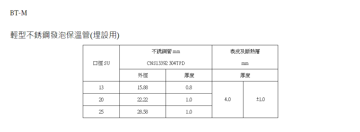 保温管为金属与塑料复合类,内层为SUS304不锈钢钢管,外层为保温发泡披覆低密度聚乙烯( LDPE )。