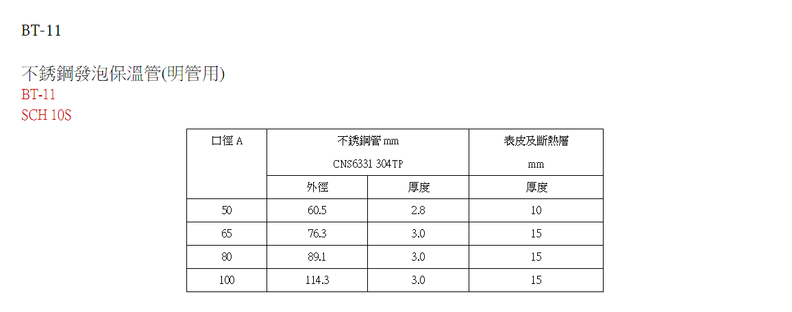 保温管为金属与塑料复合类,内层为SUS304不锈钢钢管,外层为保温发泡披覆低密度聚乙烯( LDPE )。